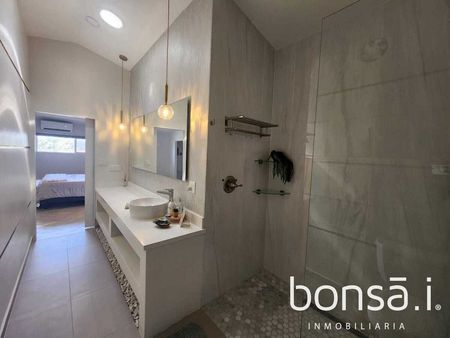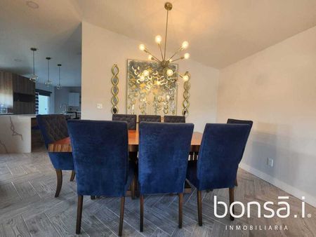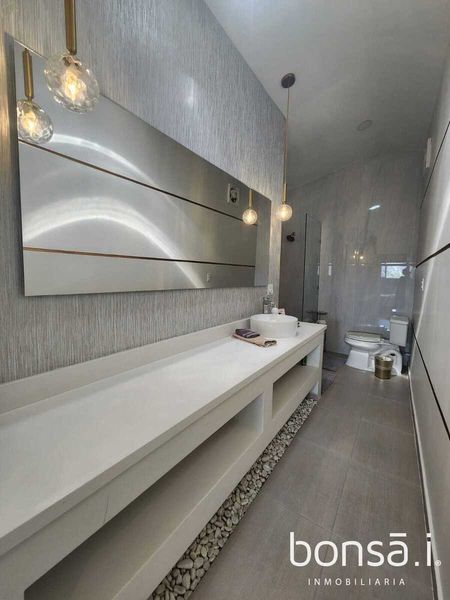 Consta de una gran sala, amplio comedor, cocina integral con cubiertas de cuarzo, estufa semiindustrial, barra con bancos y área de terraza contigua a la cocina para disfrutar de desayunos al aire libre o degustar una parrillada con un buen vino. Recámara principal con un gran walk-in closet, y dos baños completos para comodidad y practicidad de sus ocupantes. Las otras tres recámaras, también cuentan con sus áreas de guardar y baños completos. En medio de ellas se encuentra una acogedora área de televisión. Cabe mencionar que todas las camas son King size. Adicionalmente, cuenta con un área de alacena adyacente a la cocina.