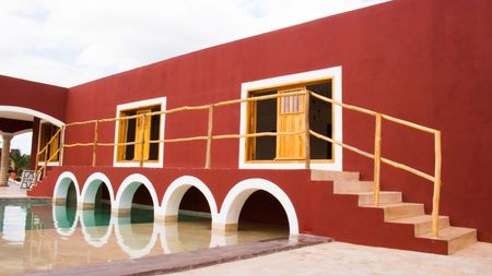 Jacuzzi exterior con acabado en chukum e hidromasaje.