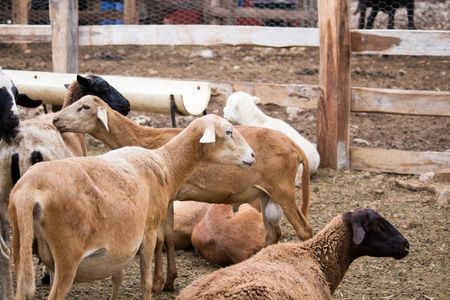 Unidad de crianza de carneros con 16 módulos (8 x 4 m) y pasillo central.