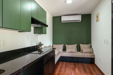 *Cocina/Sala con parrilla eléctrica, extractor, refrigerador y aire acondicionado.