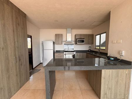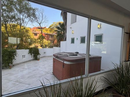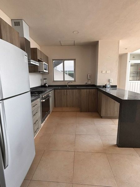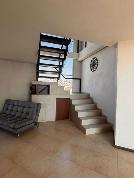 En la primera planta, te recibe un comedor a doble altura que se siente amplísimo y muy iluminado. La sala conecta con una terraza enorme desde donde puedes disfrutar una vista padrísima de la ciudad, ideal para tardeadas, cafecitos o simplemente relajarte. La cocina abierta es práctica y funcional. En este nivel también tienes una recámara con baño y walk-in closet, perfecta para visitas o como recámara principal en caso de querer evitar escaleras. Además, cuenta con otro baño completo, cuarto de lavado y cuarto de servicio, algo que no encuentras fácilmente en departamentos de la zona.