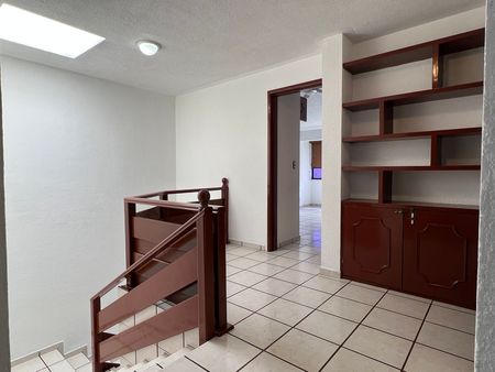 Cuenta con ventilador en todas las recámaras y estudio, cochera para 2 autos, portón eléctrico, cisterna.