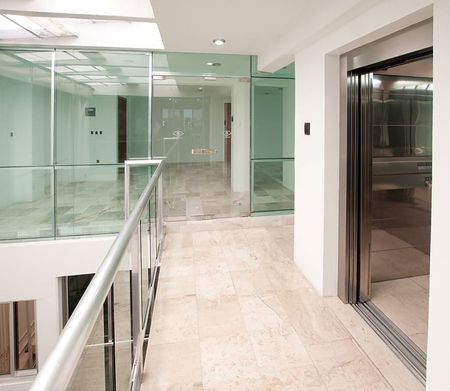 Edificio Inteligente de 7 niveles, de los cuales son dos para estacionamiento, equipado con elevador de alta velocidad, aire acondicionado, fibra óptica para voz y datos, videovigilancia con acceso controlado.