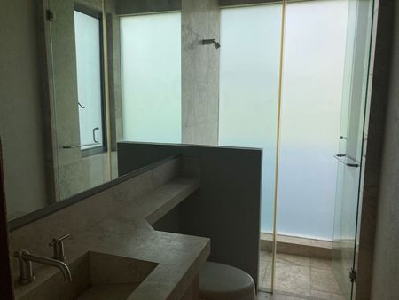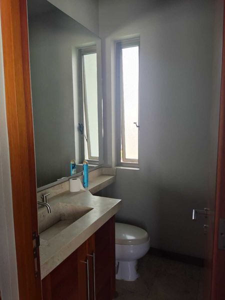P.B: estancia sala-comedor con techo doble altura, cocina equipada, estudio o recámara, baño completo. Amplia terraza, jardín con alberca y jacuzzi. Cuarto de servicio y área de lavado.