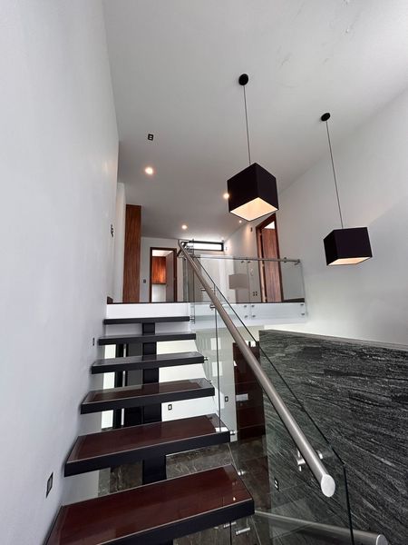 Baños de Lujo: La residencia cuenta con 6 baños completos con materiales y acabados de alta gama, así como un medio baño adicional para visitas, todos ellos acabados con un estilo moderno y elegante.