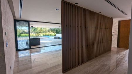 Del lado izquierdo encontrarás una oficina o estudio con una pequeña terraza, de frente podrás accesar al cuarto de vistas con clóset, baño completo y su propia terraza privada y del lado derecho encontrarás un pasillo con un pergolado de madera que te da la bienvenida a la sala y comedor los cuales rematan en una amplia terraza techada equipada con barras de ambos lados para que puedas disfrutar al máximo esta área.