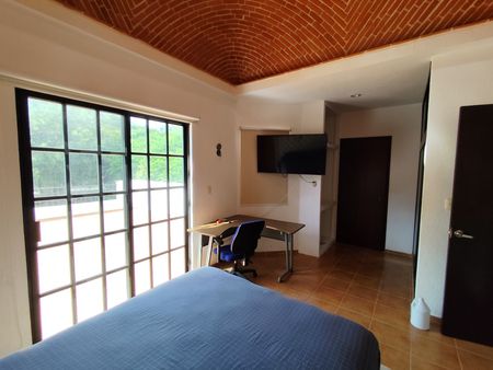 -Recamara principal con cama matrimonial, a/c, TV, y terraza de gran tamaño