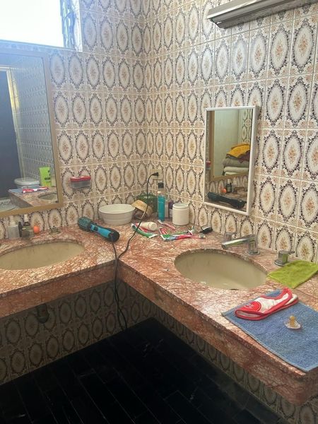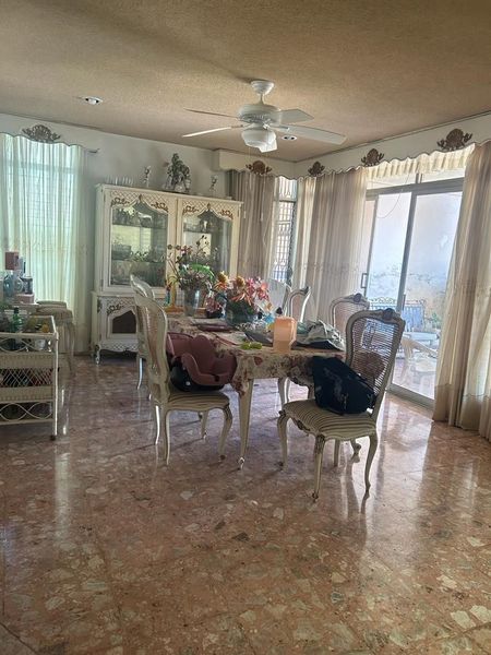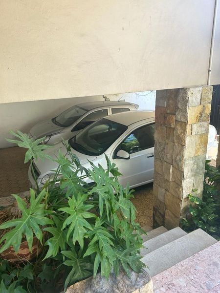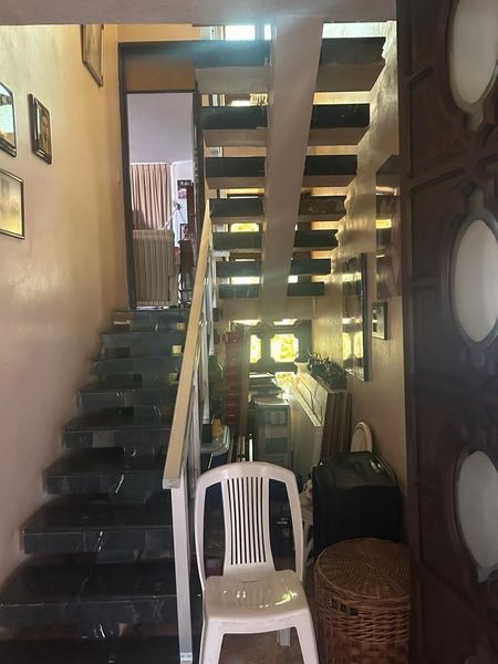 Cuarto con baño em la primera subida de las escsleras,al final de las escaleras un cubo de luz con 4 cuartos . Total de cuartos 5 más el de servicio . Total de baños: 4 baños completo y el de servicio. 2 medios baños. Garage para dos coches