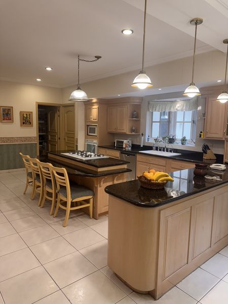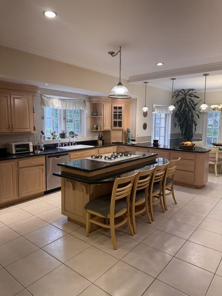 Cocina equipada , alacena , lavavajillas, desayunador , medio baño .