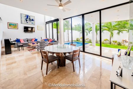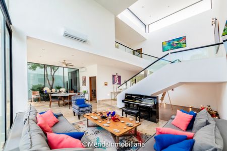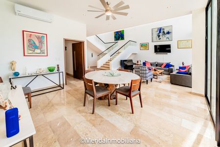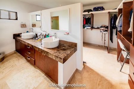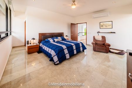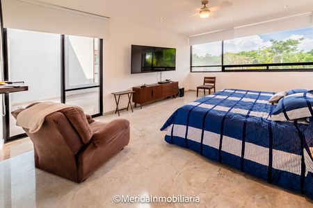 Recámara principal con closet vestidor, balcón y baño completo, recámara secundaria con clóset vestidor y baño completo, recámara terciaria con clóset vestidor y baño completo, sala de TV, vestíbulo.