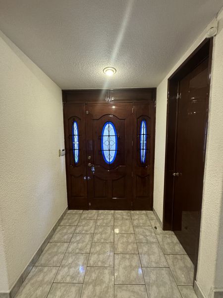 Puerta principal entablerada con emplomados es el Marco de acceso a un hogar espacioso, muy iluminado donde pisos de cerámica, arquitectura contemporánea, refleja amplitud y luminosidad, dando entrada a elegante sala principal de generosa amplitud