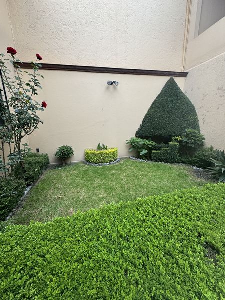La terraza techada está dividida en 2 partes dependiendo los requerimientos. La primera medio nivel arriba del patio y la otra con altura y media y bancas empotradas de cemento armado en escuadra. Su patio es grande, originalmente fue un precioso jardín plano.