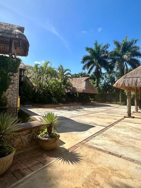 -Piscina en espacio abierto con barra bar palapa y cocina.