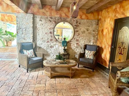 -Terraza semi techada junto a una de las dos piscinas, equipada con barra bar, cocina y asador.
