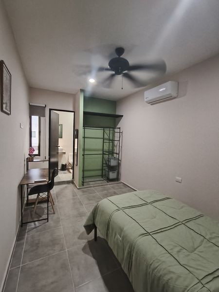 Diseñada como residencia universitaria y de profesionistas, combina privacidad, confort y áreas comunes que fomentan la convivencia y el bienestar. Habitaciones privadas (8 en total) incluyen: