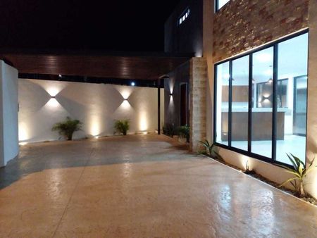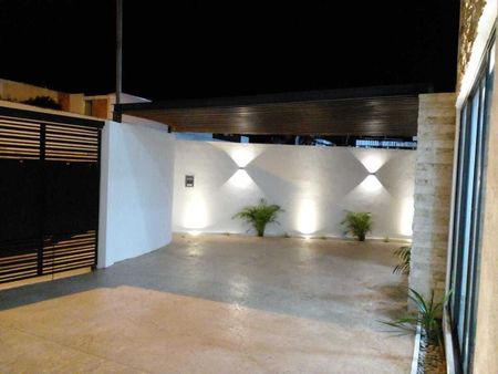 Entrada principal de doble altura con puerta de madera tzalam (1.6 x 5.8 m)