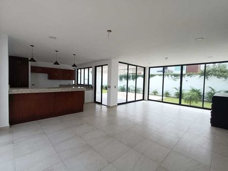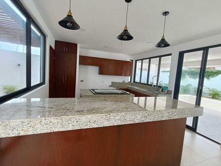Cocina (4 x 4 m) con mesetas de granito y muebles de madera de tzalam