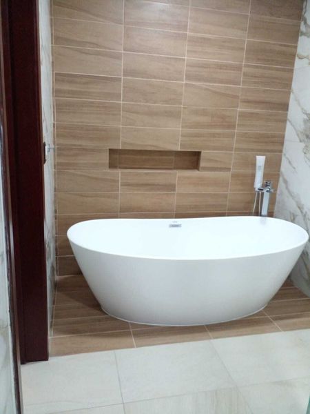 Pisos interiores de daltile (.60 x .60 m) y tipo duela en terrazas
