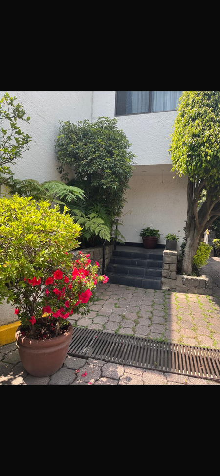 Agradable y acogedora casa dentro de un seguro conjunto con vigilancia 24/7. En planta baja recibidor, despacho, sala-comedor con salida a bonita terraza , bar y bodequita, cocina integral, despensa y baño de visitas. En primer piso, cuarto de estar, amplia recámara principal con gran closet y baño. Dos recámaras secundarias con closet que comparten baño completo. En el siguiente nivel cuarto de servicio con baño, lavandería y patio de tendido.Estacionamiento para dos coches