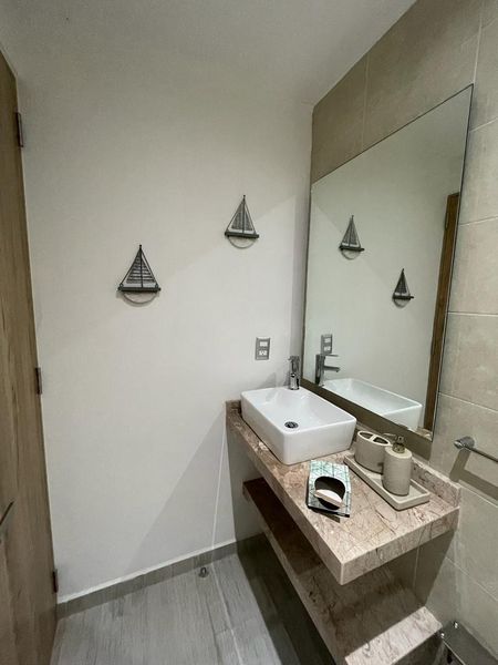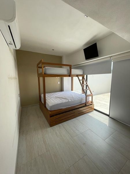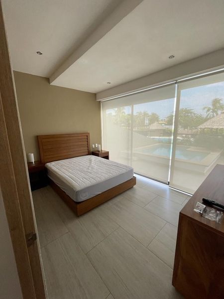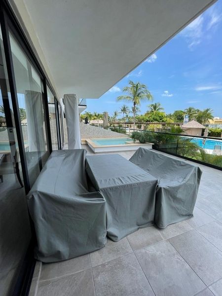 El departamento cuenta con una terraza frente a la álberca con jacuzzi privado, y además un patio trasero de muy buen tamaño.