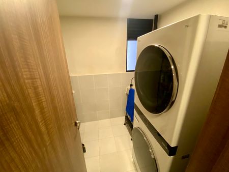 Cuenta con sala comedor con balcón, cocina abierta con barra, cuarto de lavado