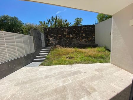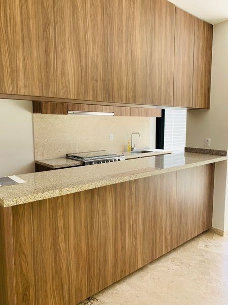 El departamento cuenta con 2 recamaras y 1 estudio o 3er recamara, 2 baños, area de lavado cerrada, cocina integral con granito, jardin amplio, terraza amplia en recamaras, acceso directo a la alberca desde el jardin.