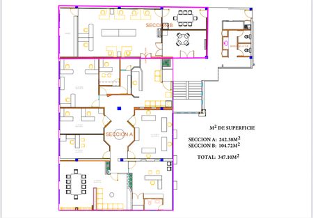 Cuenta con 347.10 mts; entre privados, sala de juntas, áreas comunes, sala de usos múltiples, sanitarios, área de cocineta.