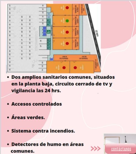 Con estacionamiento techado cupo máximo para 120 cajones, con elevadores (uno de lujo de alta velocidad y el otro elevador es de servicio tipo montacarga) cabina de lujo y puertas de cristal templado.