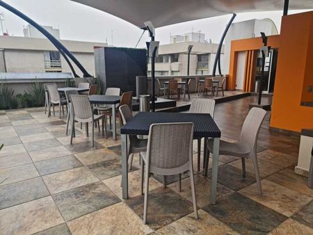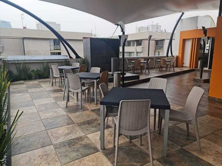 Elevador, escaleras de emergencia, CCTV, recepción y vigilancia, Roof Garden.