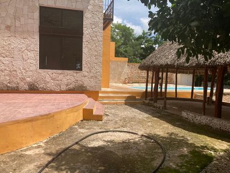 CASA DE CAMPO CON ACABADOS DE LUJO, LA CASA ESTA UBICADA EN UNA SUPERFICIE DE 1.5 Ha Y CIRCUNDADA POR UNA BARDA MAYA DE PIEDRA (ALBARRADA), CUENTA CON UN ARCO DE PIEDRA CON REJA ABATIBLE EN 2 HOJAS .