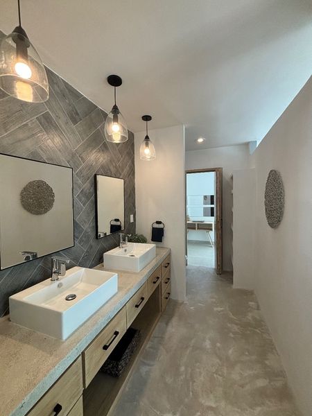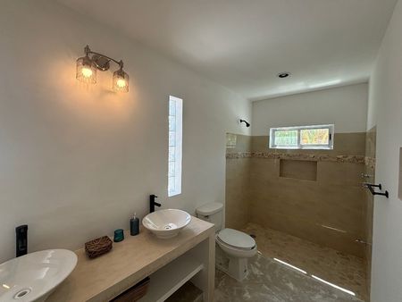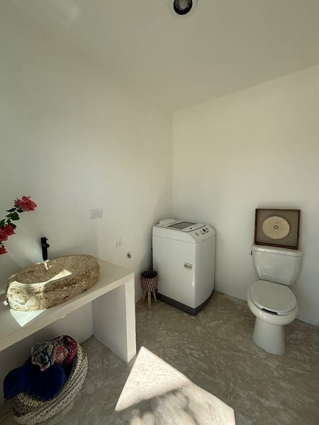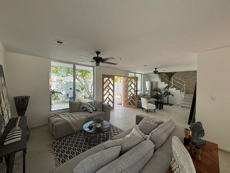 Sala comedora recibidor bodega, cocina estilo abierto para disfrutar de cocinar adentro y entretener afuera con área de bar en la terraza en cubierta de cocina con recubrimiento en Quarzo y madera de cedro en toda la carpintería equipada con estufa horno campana lavavajillas refrigerador.En la planta baja encontraras una recamara ,baño completo para las visitas área de lavado, medio baño en la parte de la terraza para la area de piscina,cuenta una extension muy bella de jardines,área de asoleado palapa de sombrilla,estacionamiento para 2 autos