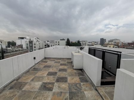 Estrena departamento nuevo en portales cuenta con 69 metro cuadrados con 2 recamaras con closet de piso a techo la recamara principal cuenta con baño completo, sala, cocina equipada con barra de granito, comedor, cuenta con roof garden privado de 30m metros cuadrados, 1 estacionamiento, área de lavado , bodega.