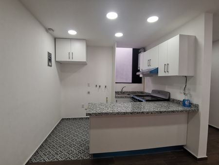 Estrena departamento nuevo en portales cuenta con 69 metros cuadrados con 2 recamaras ambas cuentan con closet de piso a techo, la recámara principal cuenta con baño completo, sala, cocina equipada con barra de granito, comedor, área de lavado, bodega, 2 estacionamientos, roof garden compartido.
