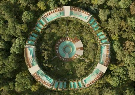 Alberca central más en doble nivel como estilo cenote más zona lounge
