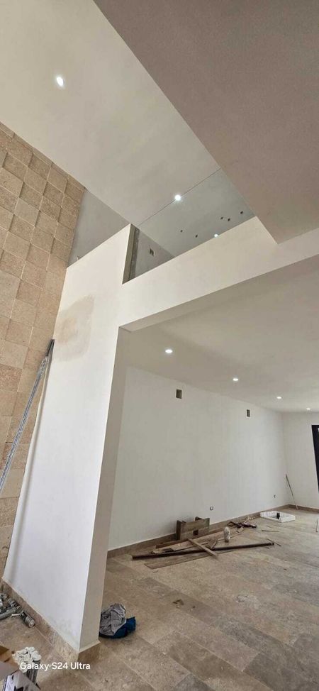 • Sala de TV con barandal de cristal templado y vista preciosa a la doble altura