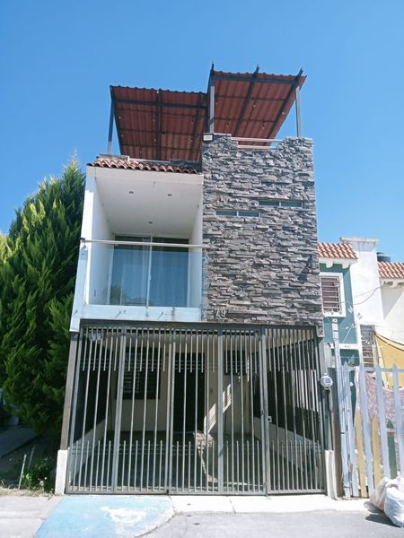 Cuenta con portón el eléctrico, 2 baños completos y 1 medio baño, 1 recámara en planta baja, patio de servicio, 3 recamaras en planta alta, balcón amplio y roof garden