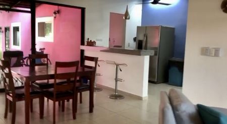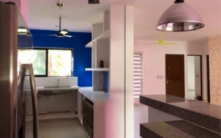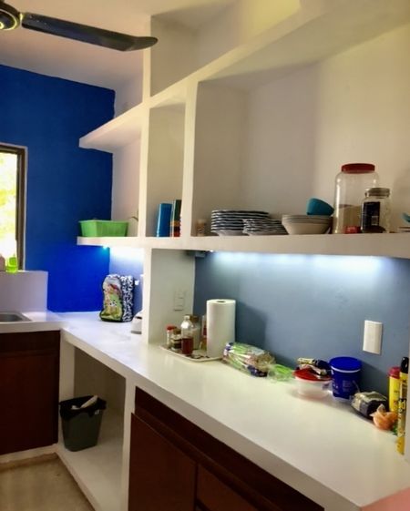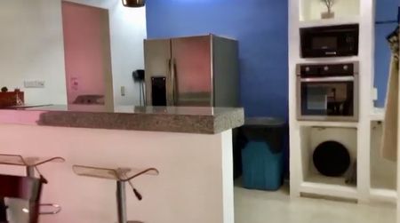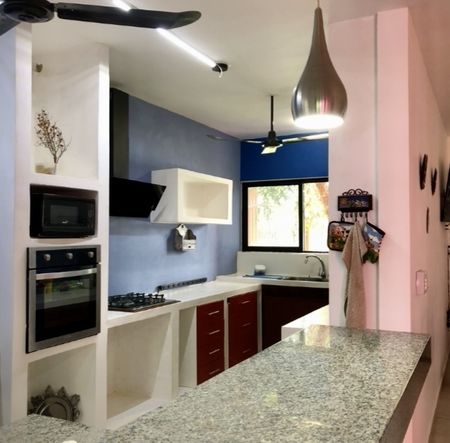 Cocina Equipada con horno de gas convencional, Parrilla de Gas , Horno de Microondas ,Campana, Refrigerador Ventiladores de techo