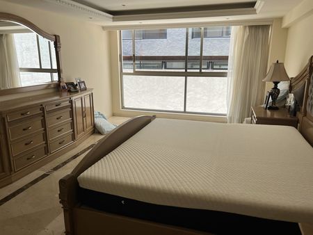 El departamento tiene 330m2 habitables, muy amplia estancia para sala y comedor, Antecomedor con balcon. cocina con isla y espacio para refrigerador y congelador, area de lavado y cuarto de servicio, 4 amplias recamaras dos de ellas comparten un baño, las otras 2 tienen su propio baño y vestidor. acogedor family room. 2 lugares de estacionamiento.