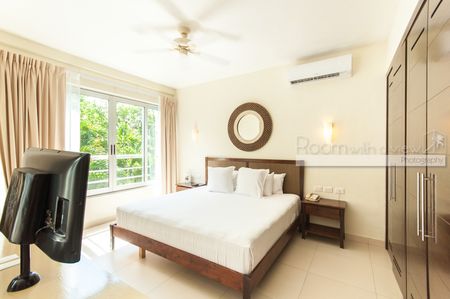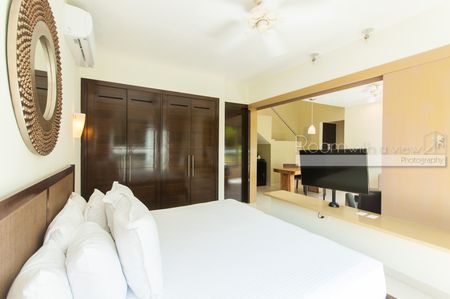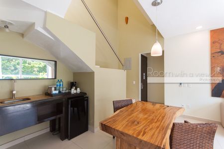 Este penthouse tipo estudio de 1 recámara y 1 baño se encuentra en el último piso del hotel y ofrece una distribución abierta con cocineta y una pared retráctil que separa la sala-comedor de la recámara para mayor privacidad. Una escalera interior lleva a su propio rooftop privado con jacuzzi, pérgola de madera y camastros. Este espacio es ideal para disfrutar del café y desayuno por la mañana o una copa de vino al atardecer rodeado de vistas panorámicas de la selva. El penthouse cuenta con pisos de loseta y acabados de alta calidad, duraderos y fáciles de mantener. Se ofrece completamente amueblado y equipado con ventiladores de techo, aire acondicionado y clóset en la recámara.