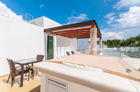 Este luminoso penthouse en el Sian Ka’an Hotel ofrece encantadores espacios interiores y exteriores y todos los beneficios de vivir en una comunidad residencial privada. Ubicado en un complejo de 290 hectáreas, rodeado de campos de golf, se encuentra a tan solo minutos de la belleza natural de la costa caribeña. Tulum Country Club (anteriormente Bahía Príncipe) se encuentra en el corazón de la Riviera Maya, a medio camino entre Playa del Carmen y Tulum, y a 80 km al sur del Aeropuerto Internacional de Cancún.