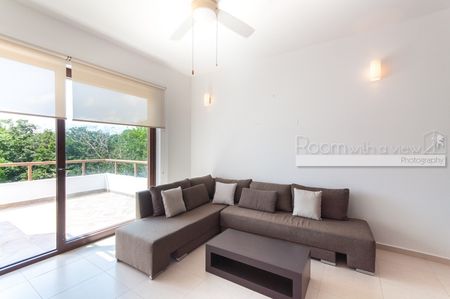 Este amplio e iluminado penthouse de 2 habitaciones y 2 baños es perfecto para rentas vacacionales o como su propio hogar en el paraíso. Ofrece una distribución abierta con cocina totalmente equipada con isla, sala de estar y comedor luminosa, y cuarto de lavado con lavadora y secadora. La sala de estar y la habitación principal se abren a un balcón privado, perfecto para disfrutar de su café matutino y desayuno o una copa de vino por la noche. Suficiente espacio de almacenamiento en la cocina y armarios en las habitaciones hacen que este espacio sea cómodo para la vida diaria y fácil para sus huéspedes de vacaciones. También cuenta con una enorme terraza con jacuzzi en la azotea con área de cocina al aire libre y vistas panorámicas a la selva. Este es un lugar encantador para disfrutar del sol o cenar al aire libre bajo las estrellas. Este departamento brilla con pisos de baldosas y acabados de alta calidad. Se ofrece a la venta completamente amueblado y equipado con ventiladores de techo y aire acondicionado.