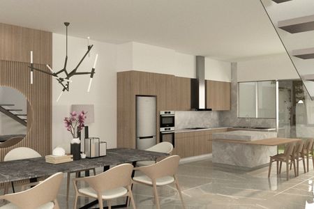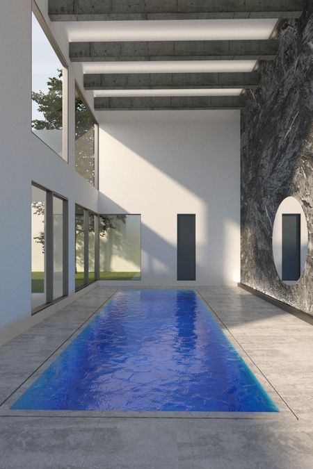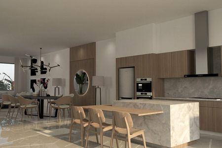 Planta Baja: Concepto abierto con recibidor, sala, comedor, cocina, antecomedor, oficina o recámara, medio baño, lavandería techada, alberca techada de doble altura con medio baño, cuarto de máquinas, área social y estacionamiento para 2 autos.
