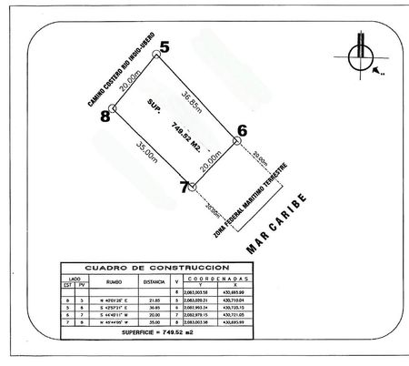 Excelente Terreno en la zona de mahahual cuenta con 20 metros de frente de playa por 35 metros de fondo.