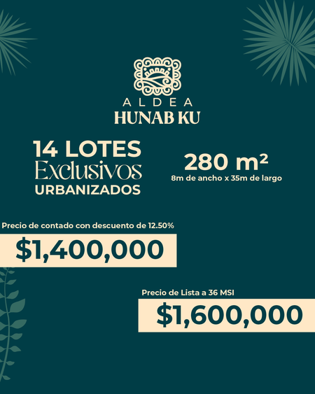 Aldea Hunab Ku, es un desarrollo de 14 lotes exclusivos urbanizados, con vista a la Laguna en donde puedes disfrutar
