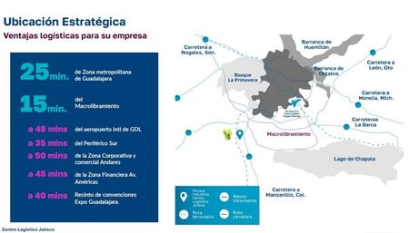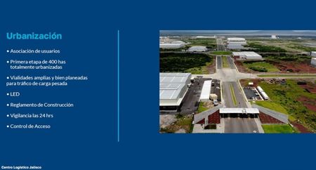 TERRENO EN VENTA DENTRO DEL PARQUE INDUSTRIAL CENTRO LOGÍSTICO JALISCO, UNO DE LOS MAS IMPORTANTES DEL ESTADO POR SU ESTRATÉGICA UBICACIÓN Y CERCANÍA A AEROPUERTOS Y PUERTOS MARÍTIMOS, ASÍ COMO ACCESO A ESPUELA DE VÍAS FÉRREAS, EN EL CUAL YA SE ENCUENTRAN INSTALADAS EMPRESAS RECONOCIDAS DE CLASE INTERNACIONAL, TERRENO LIBRE DE GRAVAMEN, LISTO PARA ESCRITURARSE E INICIAR CON PROYECTO.