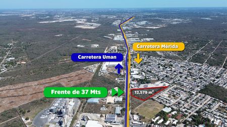 Terreno sobre carretera Uman-Merida a solo 6.2 kilometros del periferico de Merida, ideal para proyecto comercial.