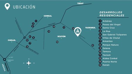 Terrenos en venta en Yaxkukul, muy cerca de complejos residenciales como Aldea Conkal y Yaxlum.