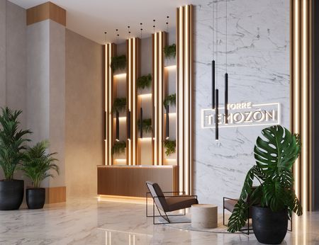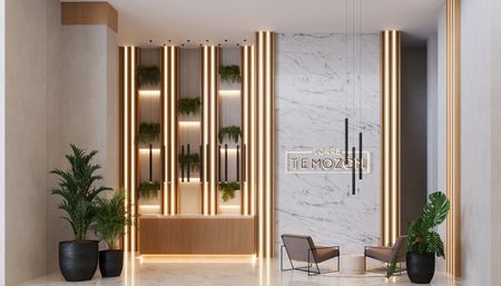 Torre Temozón ofrece una amplia variedad de tipologías de departamentos, desde 44 m² hasta más de 120 m², con distribuciones inteligentes que aprovechan cada espacio. Los acabados de alta gama incluyen pisos de mármol travertino, cocinas integrales con mesetas de granito, closets de carpintería en madera natural, y terrazas con piso porcelanato, brindando un ambiente elegante y moderno.