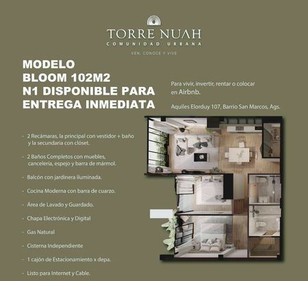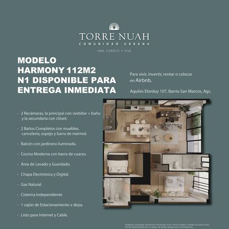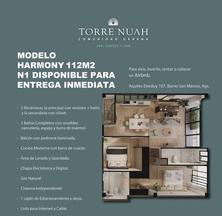 completo y preparación para aire acondicionado. (Recámara secundaria con clóset)