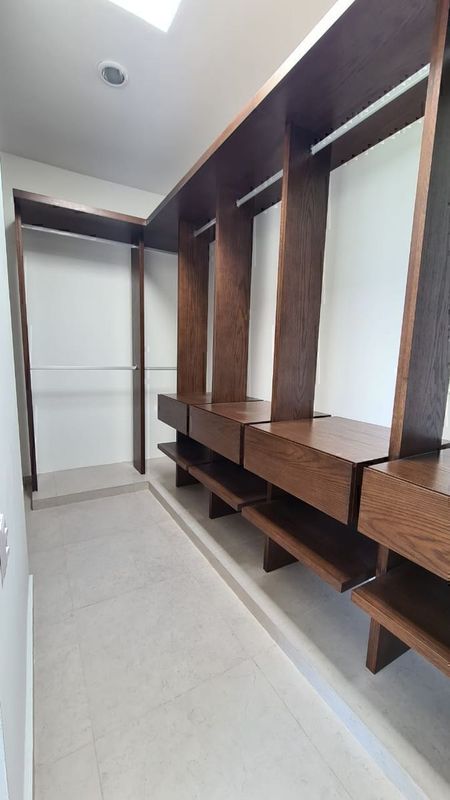 - Cocina con gaveteros superiores e inferiores con madera de cedro y encino